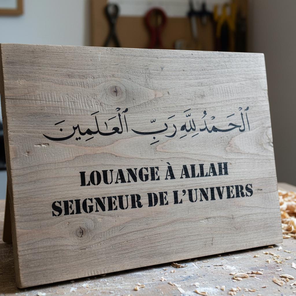 Al-Hamdu Lillahi Rabbil-Alamin Stencil Craft beautiful Islamic calligraphy with this precision stencil featuring "Al-Hamdu Lillahi Rabbil-Alamin" (All praise is due to Allah, Sustainer of the worlds). Works flawlessly on walls, canvas, fabric, and wood. Dual English and French translations included. Ideal for creating spiritual home décor and meaningful artistic expressions.
