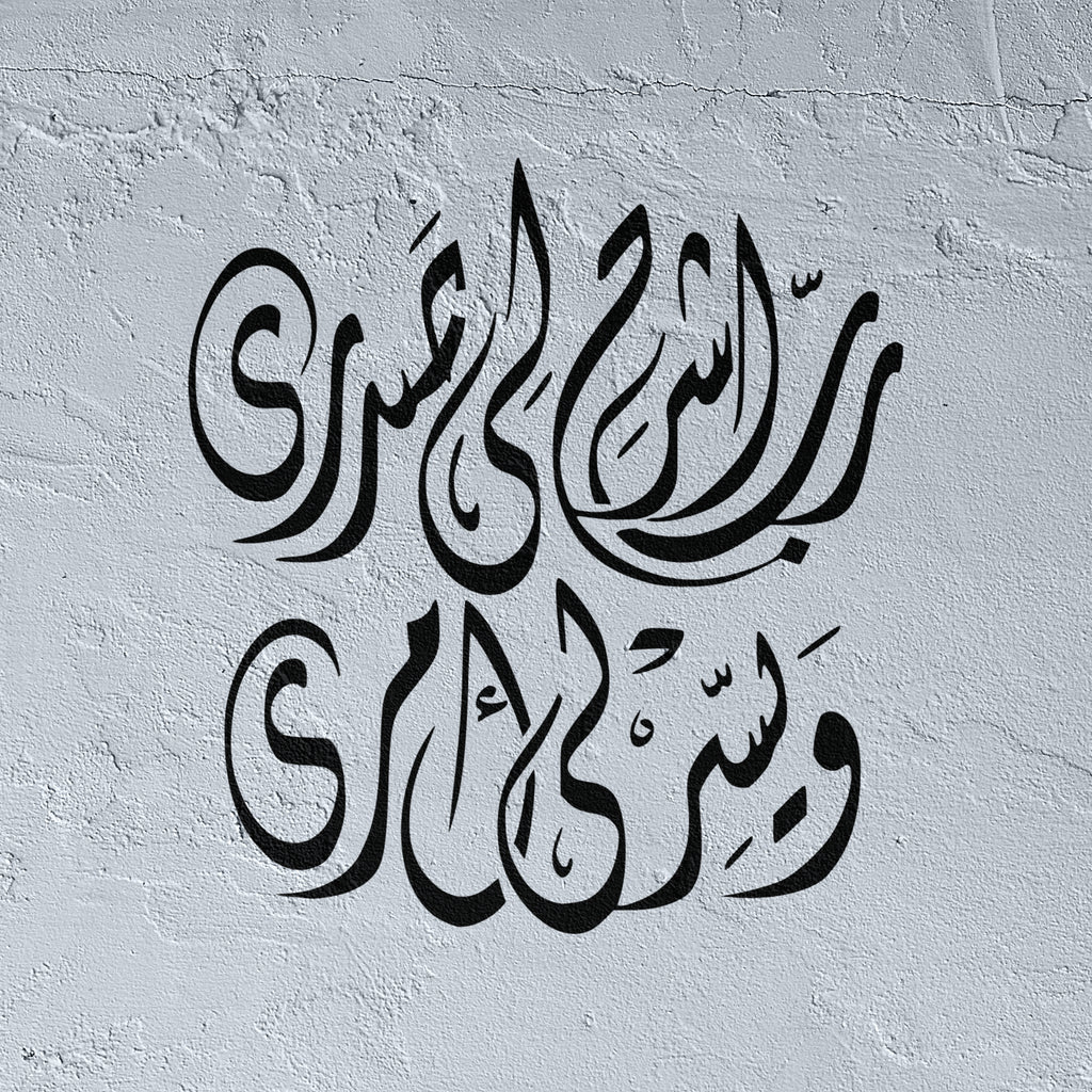 This "Rabi Echrah Li Sadri" stencil features elegant Arabic calligraphy that beautifully displays the phrase "رَبِّ اشْرَحْ لِي صَدْرِي" (My Lord, expand my chest). Perfect for artists and enthusiasts, it allows you to create meaningful art with precision and style, highlighting the spiritual depth of the phrase in your projects.