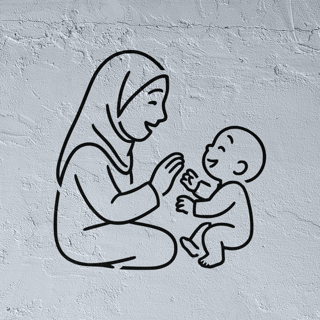 A delicate line art stencil depicting a lady playing joyfully with her baby, capturing tender moments of connection and love. This minimalist design highlights the beauty of motherhood in simple, elegant lines, perfect for creative projects or decor.